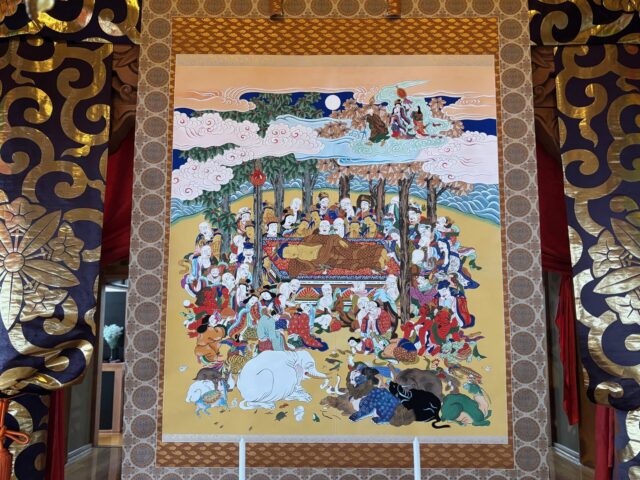 大玄寺では2月1日~15日までの期間、お釈迦さまのお亡くなりになられた様子が描かれた「涅槃図」をお祀りしています。